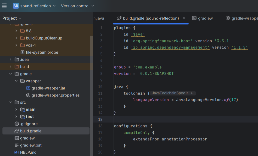 build.gralde 파일에 명시되어 있는 자바의 버전도 확인해봅니다.