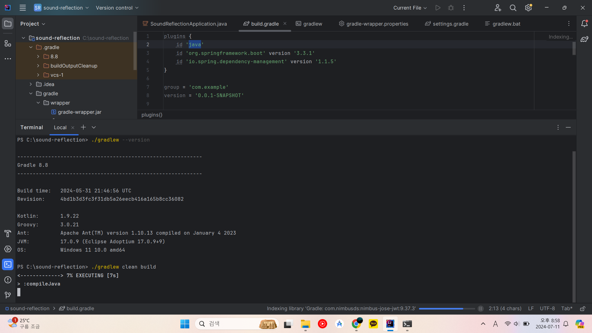 현재 gradle 버전을 확인하기 위해 다음 명령을 실행해보았습니다.
