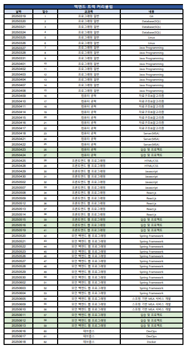 첫 달에는 Git, SQL, 리눅스, Java, 자료구조를 배웠습니다.