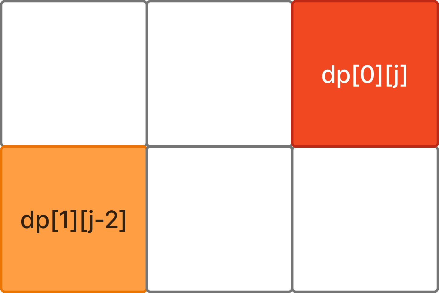 * dp[0][j-2]는 dp[1][j-1]의 이전 선택이 될 수도 있기 때문에 제외한다.