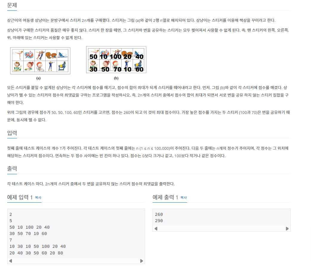 오늘은 스티커 문제를 풀어보도록 하겠습니다.