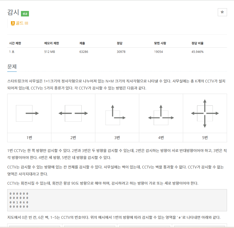 이 문제는 모든 CCTV가 바라보는 방향의 조합을 완전 탐색(Brute Force) 으로 시도해,